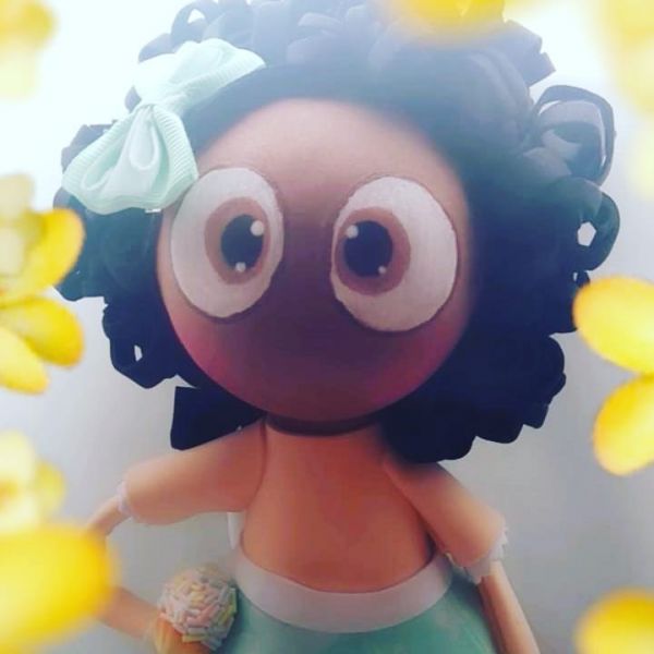 Toda confeccionada em e.v.a e com laço de tecido na cabeça.